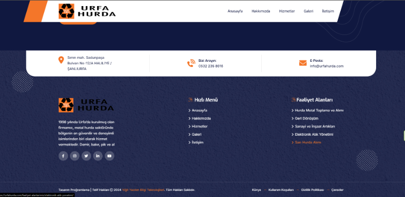 Urfa Hurda Web Sitesi Yayında! Kurumsal ve Modern Bir Dijital Dönüşüm